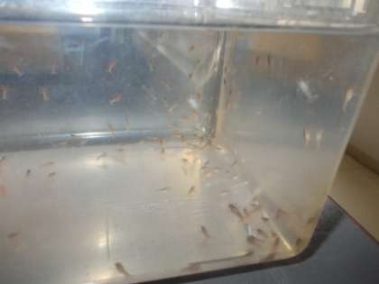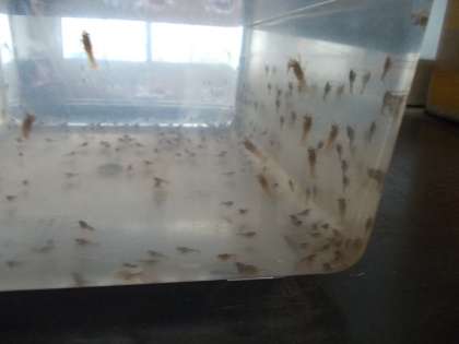 お母さんザリガニは力尽きて死んでしまいましたが、赤ちゃんザリガニは元気に動き回っています。