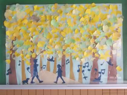 今日から11月です。玄関掲示が新しくりました。5年生がつくったイチョウの葉が秋を感じさせてくれます。どうぞご覧ください。