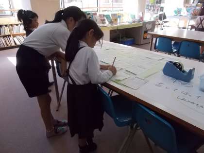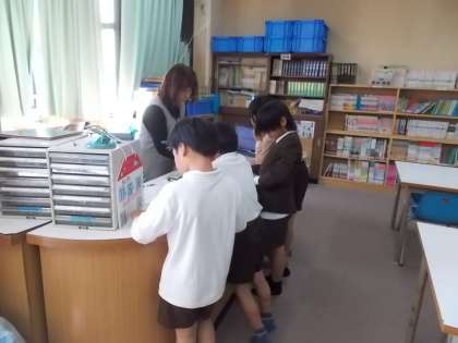 読書週間ということもあり、休み時間にはいつもより多くの児童が図書室を利用しています。読み聞かせなど、図書委員会の活動により、本に親しんでいる児童も増えているようです。読書週間には、読んだ本の感想などを読書カードに書いて貼り、みんなに紹介する活動を行っています。