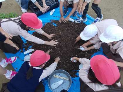 土の感触は、心を落ち着かせる効果があります。いやしですね。