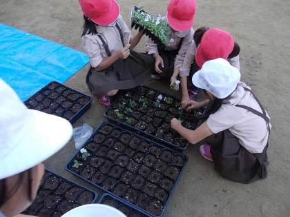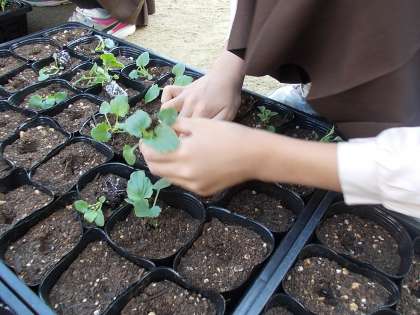 苗の取り方を聞き、底から割り箸をつっこんで取りました。