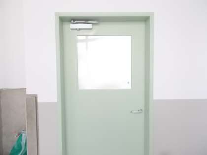 入り口を覆っていた板がなくなり、新しい扉が見えています。12月から使用できる予定です。