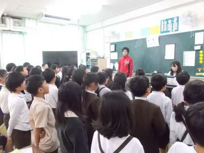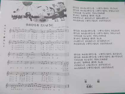 11月27日(水)は2年生担当の音楽集会です。曲は「手のひらをたいように」です。美しく、また、楽しい気持ちが伝わるような歌声でした。