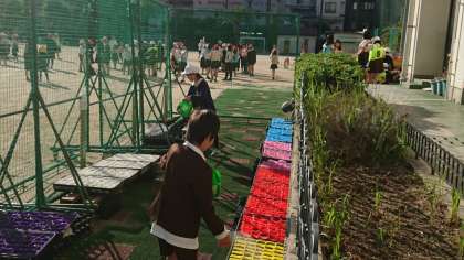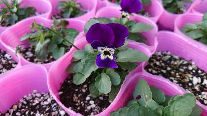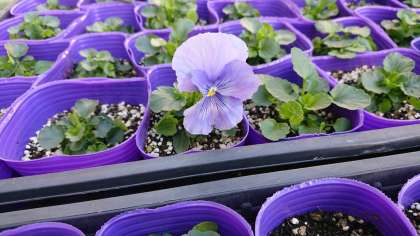 3年生と環境美化委員会が育てているビオラが咲き始めています。