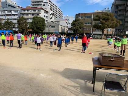 1日(日)に本校運動場で中津地域青少年指導委員会主催の「ビッグゲーム」が開催されました。本校の児童50名以上が参加し、たてわりの9つのグループに分かれ、9つの遊びのコーナーを回り、点数を競いました。