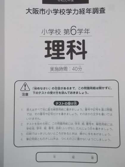 昨日からの2日間、3〜6年生が「大阪市学力経年調査」に取り組んでいます。これまで学習した成果を発揮しようと力が入っているようです。