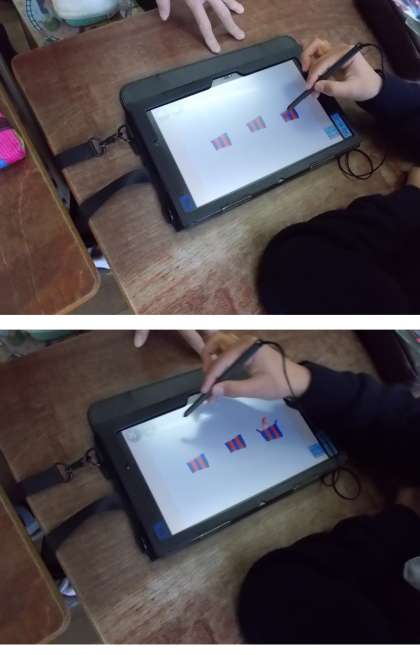 タブレット端末を使い、プログラミングの学習を行いました。今日は、「びっくり箱からほしいプレゼントが飛び出す」プログラムを作りました。これまでに学習したことをいかし、また、友だちと教え合いながらプログラム作りに取り組みました。子ども達のアイデアは豊富で、次々に思い浮かんでは、プログラムを作っていました。進めていくうちに、びっくり箱から飛び出したものが、さらに動くようにしたい、など、工夫を重ねていました。