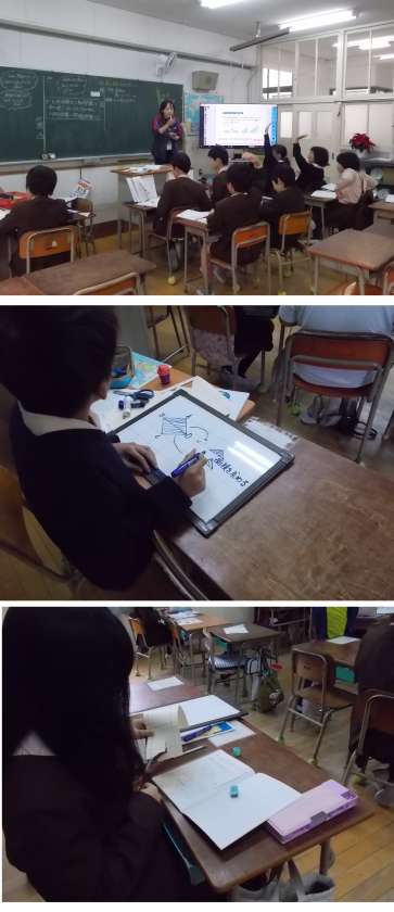 ひし形の面積の求め方を考える学習をしました。ひし形の図形を切って動かしたり、図で表したりなど、これまでに学習したことをいかしてひし形の面積の求め方を考え、自分の考えをわかりやすく表現することができました。たくさんの考え方が発表され、どの方法がはやく、便利で、簡単に面積を求めることができるか考えました。最後には、公式を使ったひし形の面積の求め方を学習しました。