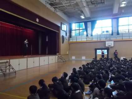 生活指導からの話では、2学期の過ごした方を個々に振り返りました。そして、交通安全、スマートフォンの使い方など冬休みを健康で安全に過ごすように話がありました。