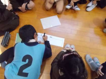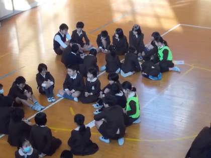今日の集会では運動委員会から長なわ週間、長なわ大会の説明がありました。その後、なかよし班で話し合い、目標を決めました。とぶ回数にこだわるのではなく、声をかけ励まし合うことや、とぶタイミングを教えながらがんばること、楽しくとべるように協力することなどを目標にあげていました。これからの各班の取組が楽しみです。この取組を通じ、さらに仲良くなること、運動が好きになることと期待しています。
