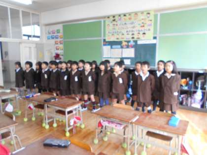 1月29日(水)は1年生担当の音楽集会で曲は「レッツゴー!あしたへ」です。はじめての音楽集会にむけてやる気一杯です。