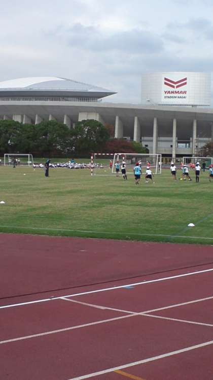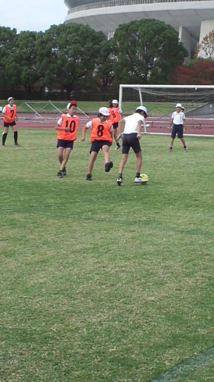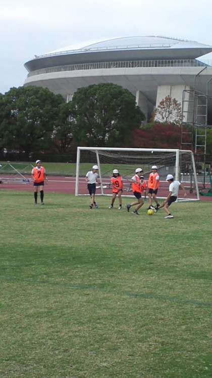 芝生の上でサッカーをしました。土の上とはちょっと勝手が違います。