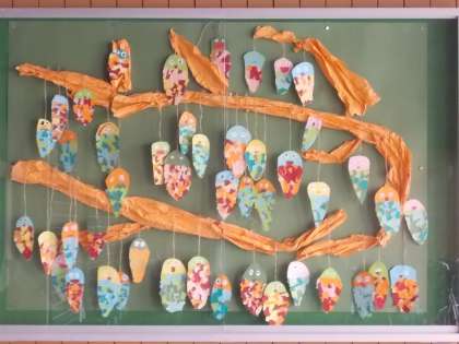 2月になり玄関掲示が新しくなりました。今月の担当は1年生です。かわいいミノムシが並んでいます。ぜひご覧ください。