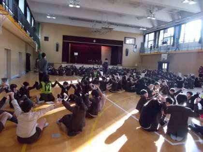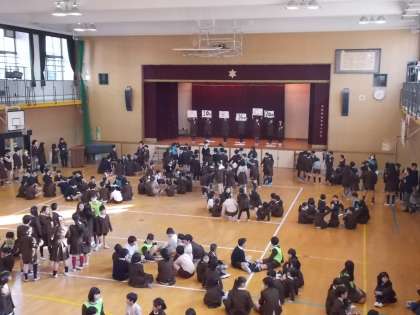 今日のなかよし集会は「中津小クイズ」でした。中津小に関する三択クイズが出され、なかよし班で相談して答えました。クイズは「くすのきの数」「児童会目標」「校長先生の誕生日」などについて出題されました。子どもたちも教職員も中津小について詳しく知る貴重な時間となりました。