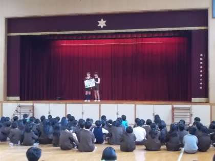 今日の児童集会でクラブ紹介を行いました。それぞれのクラブの代表者が活動内容などについて話しました。中津小学校には、イラストクラブ、クラフトクラブ、科学クラブ、球技クラブ、室内遊びクラブ、チャレンジスポーツクラブの6つのクラブがあります。明日にはクラブ見学会を行います。来年度のクラブ活動は何にしようか、今から楽しみにしています。