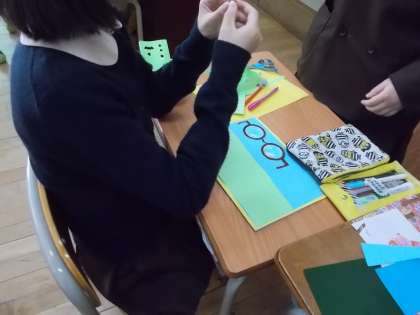 これまでお世話になった教職員の方々に、感謝の気持ちをこめてカードを作っています。それぞれの教職員に合わせ、どんな模様にしようか、どんな色にしようか、どうしたイメージに合うか、など考えながら工夫を重ねて作っています。