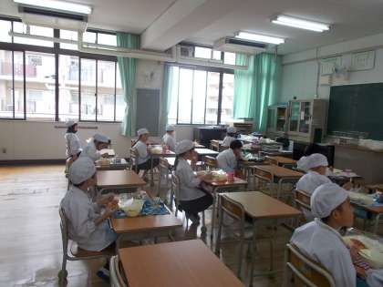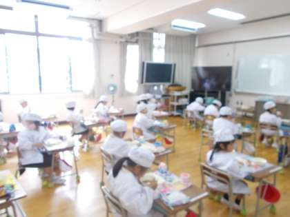 今日から、楽しみにしていた給食が始まりました。今年度最初の献立は「マーボーはるさめ、おさつぱん、牛乳」でした。1年生にとっては初めて、2年生以上ににとっては久しぶりの給食でした。少しずつ、通常の学校生活が始まっています。明日の給食も楽しみですね。
