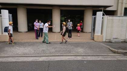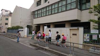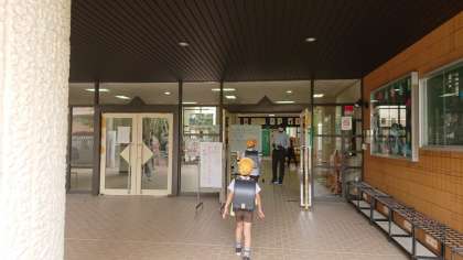 今日の登校の様子です。登校すると門の所で、検温チェックを受け、消毒しています。今では尋ねる前に自分から体温を伝える児童が多くなりました。