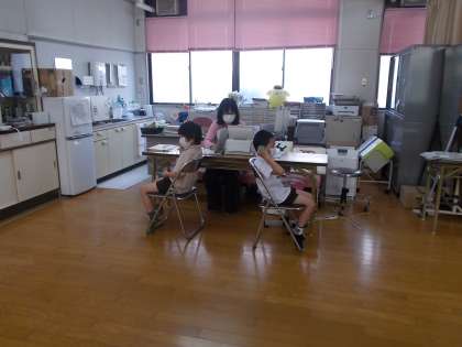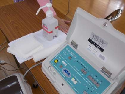 発育測定、視力検査に続き、聴力検査を実施しています。上の写真は2年生の検査の様子、下の写真は検査に使用している機械です。