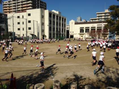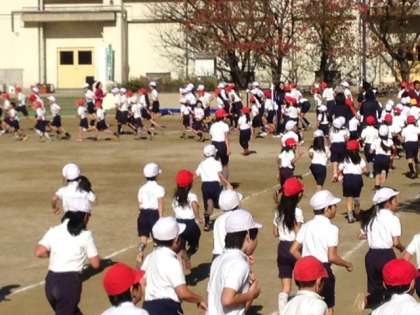 はじめの2分間は今まで通り全員走で担任を先頭に走ります。残りの時間がそれぞれ1分ずつ長く(低学年は2分、中学年は3分、高学年は4分)なりました。
