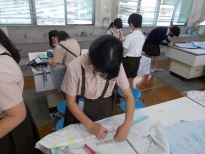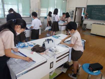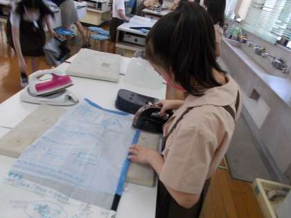 エプロン作りに取り組んでいます。これからミシンで縫い始めます。どんな作品ができるか楽しみですね。自作のエプロンを着て最初に何を作ろうか、今から楽しみですね。