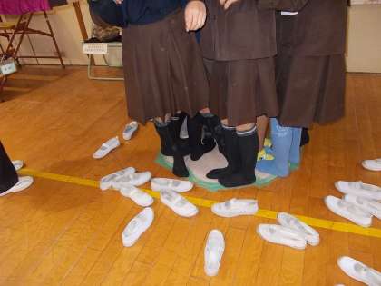 足あとに、女子で11人、男子で10人乗れました。