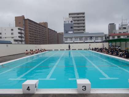 6年生は今日からプールでの学習です。初回の今日は、校長先生の話、プールでの学習の仕方、ルール、めあてなどについての話を聞き、学習に取り組みました。例年とは少し違った形での学習となりますが、自分のめあてに向かって力いっぱい取り組んでほしいです。