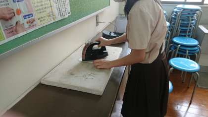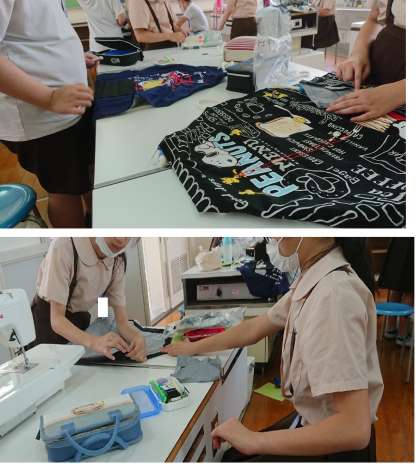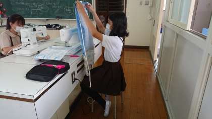 エプロン作りに取り組んでいます。ポケットの形や、付ける位置を考えながら取り組んでいました。もうすぐ完成です。