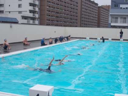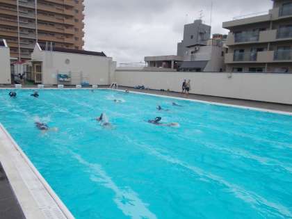 クロールの学習をしています。それぞれの課題に合わせて練習を重ねています。25m泳ぐことができる児童が増えてきました。