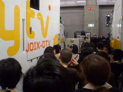 写真は中継車の見学のようすですが、「情報ライブミヤネ屋」の本番前のスタジオも見学することができました。(スタジオの写真はNGなので)