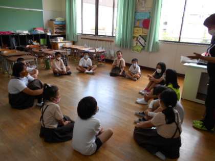 1〜6年生までの児童で構成する「なかよし班」が発足し、第1回めの活動を行いました。今日は、班のメンバーが初めて顔を合わせ、ゲームを交えながら自己紹介をしました。緊張している子どもたちの姿も見られましたが、高学年の児童を中心に楽しく過ごせたようです。例年のような全校集まっての集会はまだ難しいですが、児童会や委員会で活動を計画しています。これからのなかよし班での活動が楽しみですね。