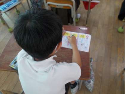 新出漢字の学習をしました。2年生になり、画数の多い漢字も出てきていますが、意欲的に取り組んでいます。2年生で学習する漢字は160字です。文を書く時には、習った漢字をどんどん使い、身に付けてほしいです。