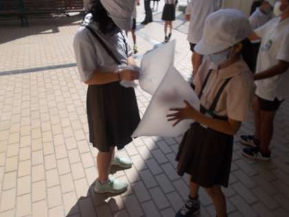 「とじこめた空気のせいしつ」の学習をしました。子どもたちは運動場で、袋にとじこめた空気を抱えたり、空にあげたり、友だちと押し付けあったり。