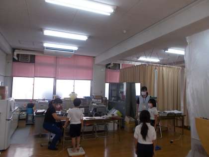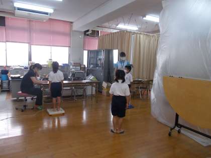 先週から始まった発育測定も、今日の1年生で最終となりました。測定のしかたも並び方も1学期に続ききちんとできていました。どれだけ大きくなったかな。