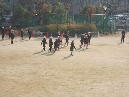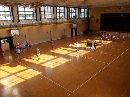 運動場でドッジボール、講堂ではバスケットボールをして盛り上がっていました。