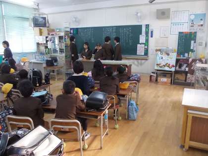 登校班の教室にわかれ、班長が中心になって、冬休みの過ごし方について話し合いました。