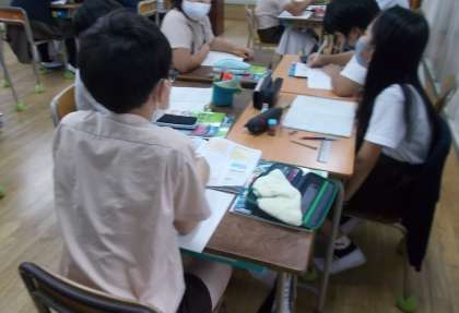 「これからの食料生産とわたしたち」の学習をしています。世界各国の食料自給率やその移り変わり、日本の食料自給率が高くないことや過去と比べて下がってきていることを学びました。そして、日本の食料生産にどのような課題があるか考え、話し合いました。