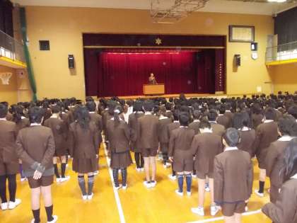 始業式では6年生の代表の児童が、6年生の思い出と、残りの小学校生活に向けての決意を述べました。校長先生からは