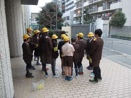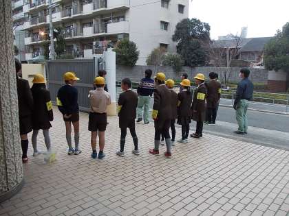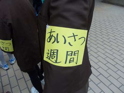 登校時、正門に学級代表が立ってあいさつを呼び掛けます。
