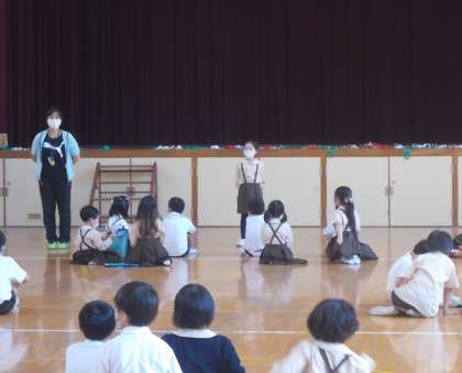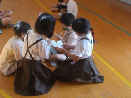 今週の木曜日は1・2年生の遠足です。遠足では、1・2年生で一緒に過ごす時間があります。遠足に向けて、互いにあいさつしをし、名刺交換、ゲームなどをして仲良くなりました。最後に、2年生から1年生へのプレゼントがありました。プレゼントをもらった1年生も渡した2年生もとても喜んでいました。