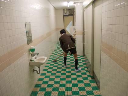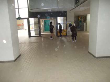 くすのきの前の廊下、男子トイレ、玄関ホールです。