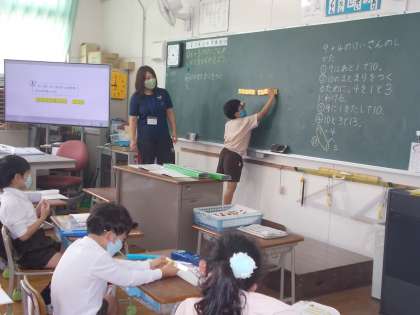 くりあがりのあるたし算の学習をしています。。10のまとまりをつくり、10といくつかで考え、計算に取り組みました。ブロックや図を使い、計算のしかたを考えました。これまでの学習をいかしながら、新しく学習することがらに取り組んでいます。