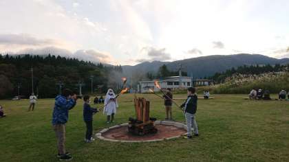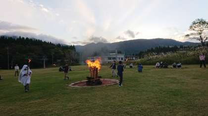 キャンプファイヤーが始まりました。火の神からわけられた火が燃え上がっています。