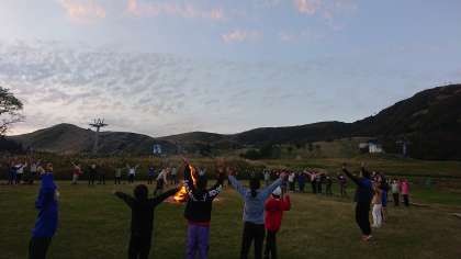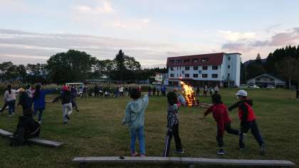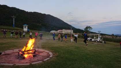 キャンプファイヤー係を中心にゲームやダンスを楽しんでいます。