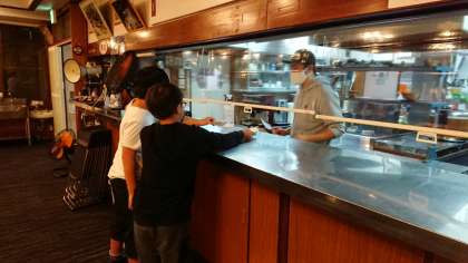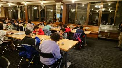 オリエンテーリング、魚つかみ、キャンプファイヤーと活動し、とても空腹だったようです。多くの児童がご飯のおかわりをしています。