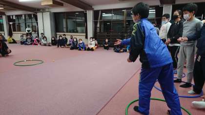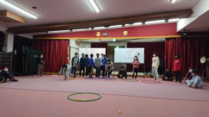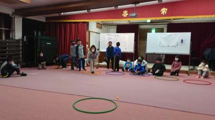 ピンポン玉入れです。入りそうでなかなか入らない難しい競技です。応援にも熱が入ります。