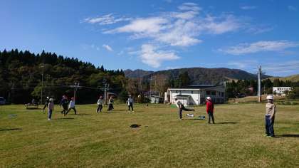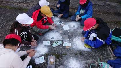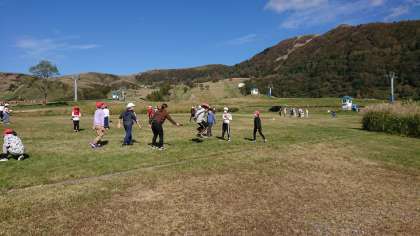 高原散策を終え、ボールや長なわを使って遊んだり、勾玉作りをしたりして過ごしています。