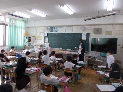 かけ算の学習に取り組んでいます。今日は、かけ算(4の段)の決まりを見つける学習をしました。これまでに学習したことをいかして考え、「かける数が1増えると答えは4ずつ増える」ということを学びました。