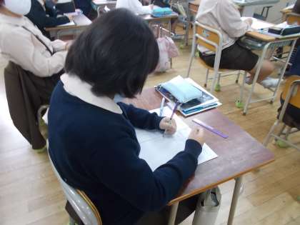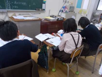 単位量あたりの大きさの学習をしています。今日は「速さ」の学習をしました。これまで学習したことをいかし、「速さ」「道のり」「時間」の求め方を考えています。