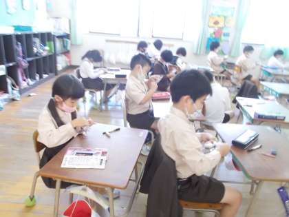 アルミ缶を使った造形活動に取り組んでいます。アルミ缶を切ったり、曲げたり、ねじったりしながら、それぞれのテーマに沿ってつくっています。どんな作品ができあがるか楽しみですね。